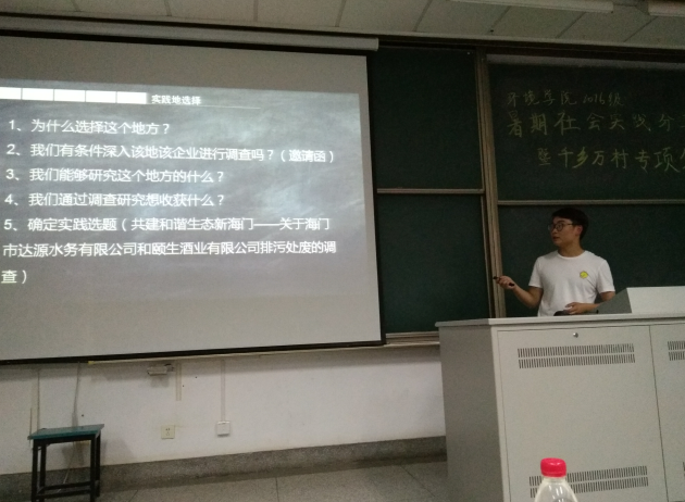 2017年4月20日晚上6点30分,环境院团委实践部与环境院科协在致用201联合举办了我院2016级暑期社会实践分享会暨千乡万村专项分享会。此次宣讲会旨在让同学们明晰和了解暑期社会实践的目的、意义与具体内容,向过去的优秀实践吸取经验。