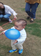 我们班的女生把吹好的气球用准备好的细线绑上送给可爱的小宝宝们,并结合刚刚过去的“世界环境日”向小朋友们宣讲了一些简单的环保知识,同时也吸引了小孩子的爷爷奶奶们也走进了我们的中间。