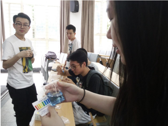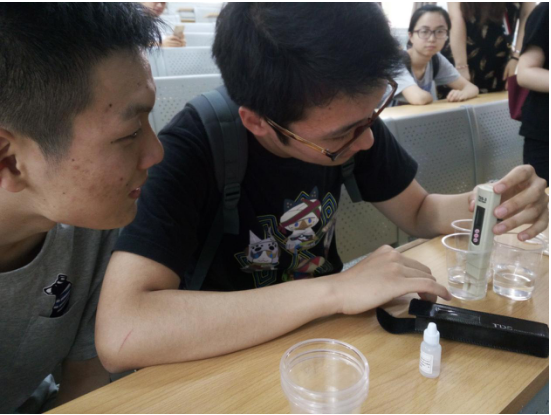 讲解过后,大家进行分组,分别对不同水源进行相应的测定分析。