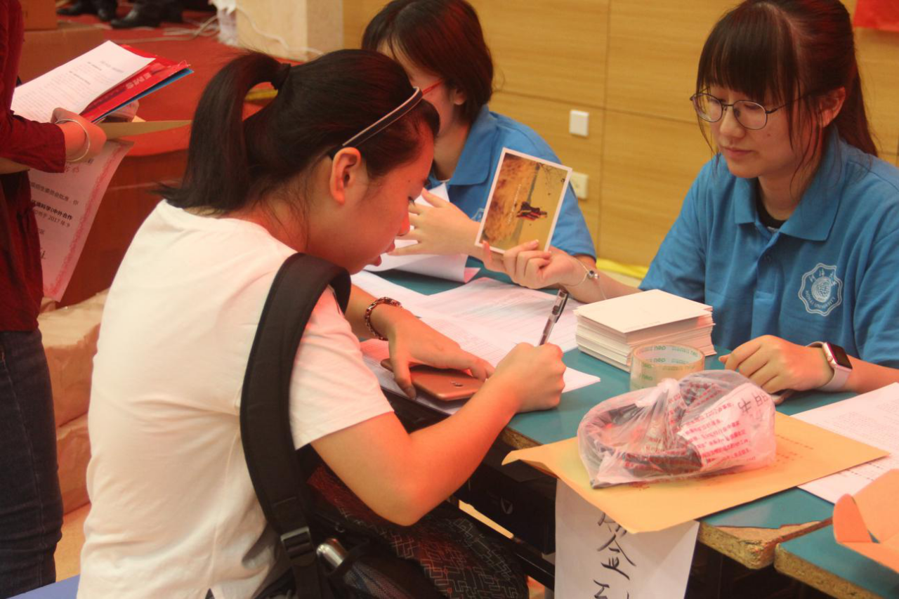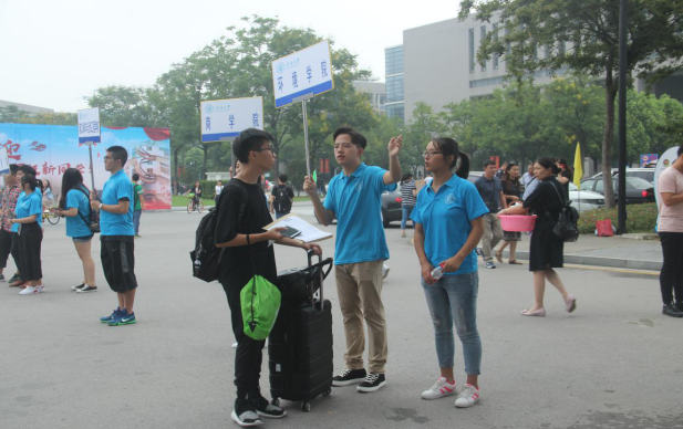 在东门和南门的同学主要负责导引的工作,他们举着“竞博JBO官网”的牌子,为学生和家长提供帮助;在文体中心的同学提前准备好了新生入学所需的各项材料;在骏园接待点工作的同学则为新生更方便的入住宿舍而努力着。