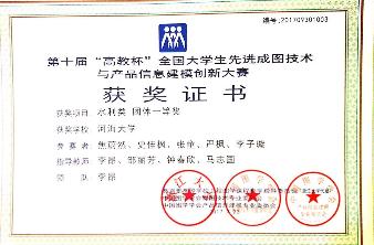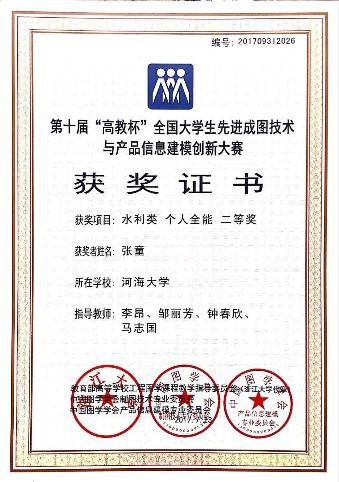 我院2015级本科生张童在第十届全国大学生先进成图技术与产品信息建模创新大赛中多项获奖