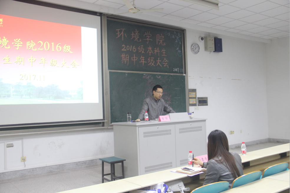 2017年11月13日晚,竞博JBO官网2016级本科生期中年级大会在致高楼211教室举行,本次年级会邀请到竞博JBO官网副院长李轶担任主讲人,由16级辅导员老师金意倩主持。