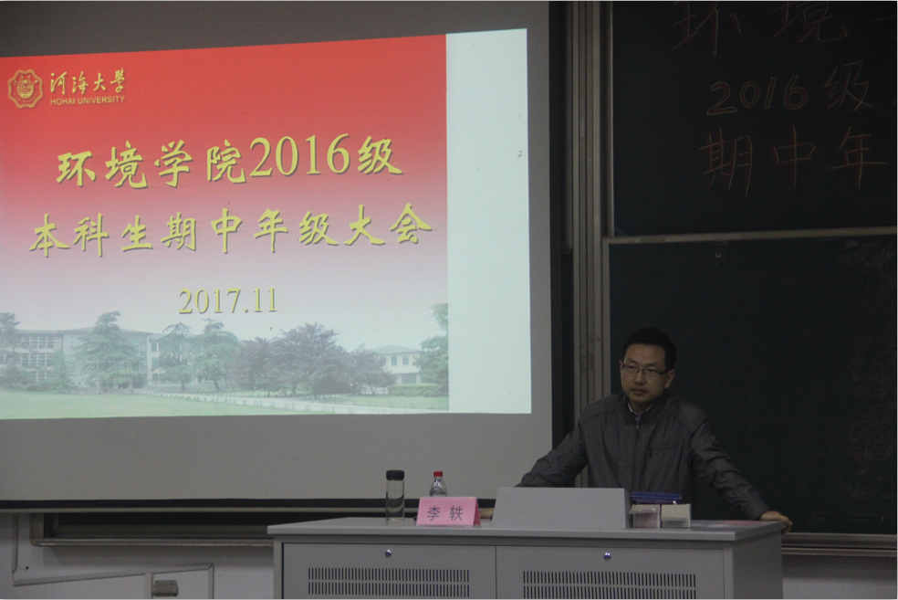 在大会上,李轶教授首先从国家对教育的重视和投资之大谈起,强调了教育对于一个国家的重要性,随后指明学校应当在教育中树立以学生为主的理念,并通过中国三大奇迹:国家长久的统一、人口的世界第一、五千年文明的流传与水的渊源,鼓励同学们要对自己,对专业,对学校充满信心。