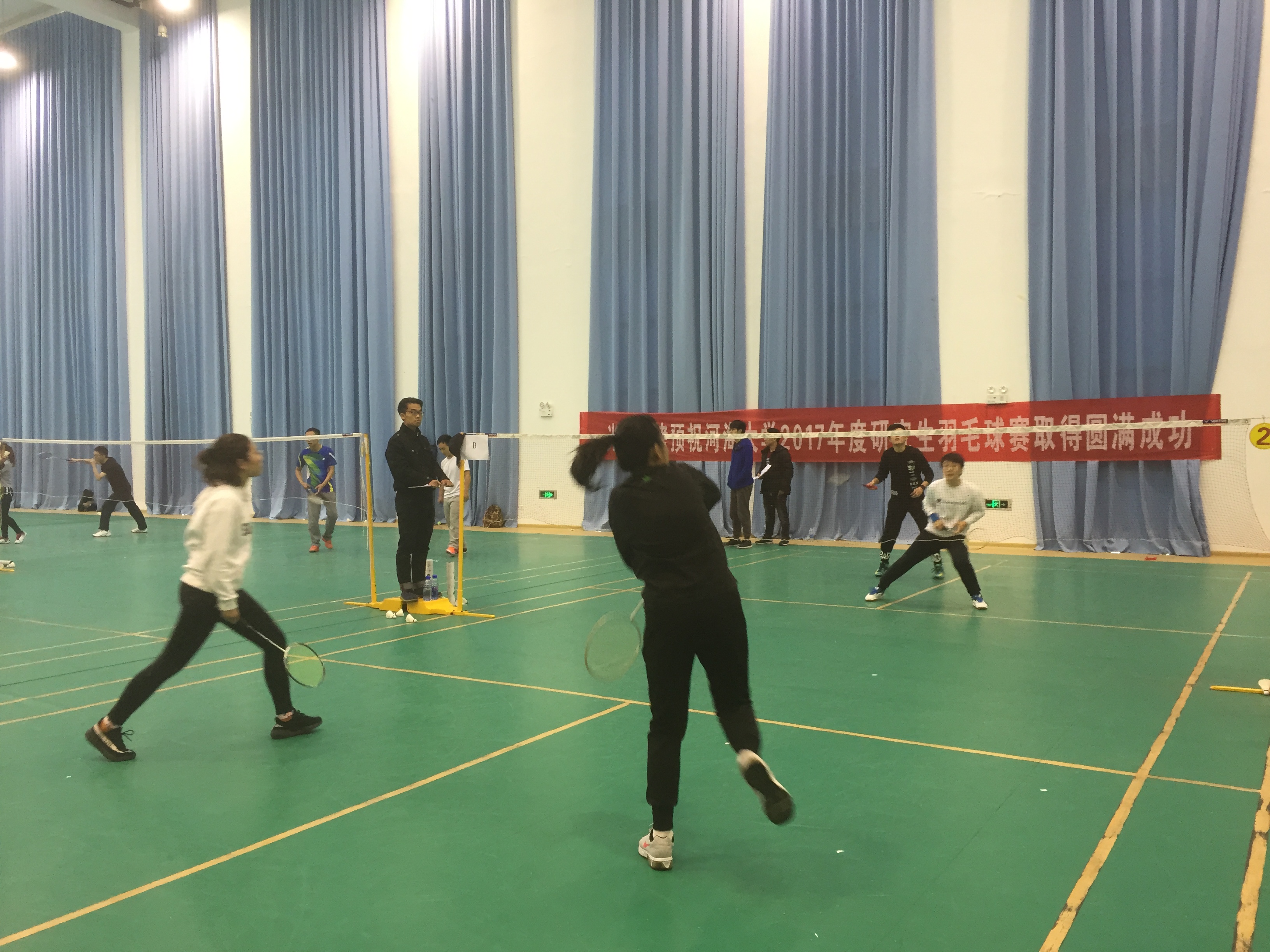 为了丰富我校研究生同学的生活,促进同学之间的沟通,河海大学研究生学生会在2017年12月2日在江宁校区文体中心羽毛球馆进行了一场紧张激烈而又不失趣味的羽毛球友谊赛。比赛共分为男单、女单、男双、女双和混双五个比赛项目。