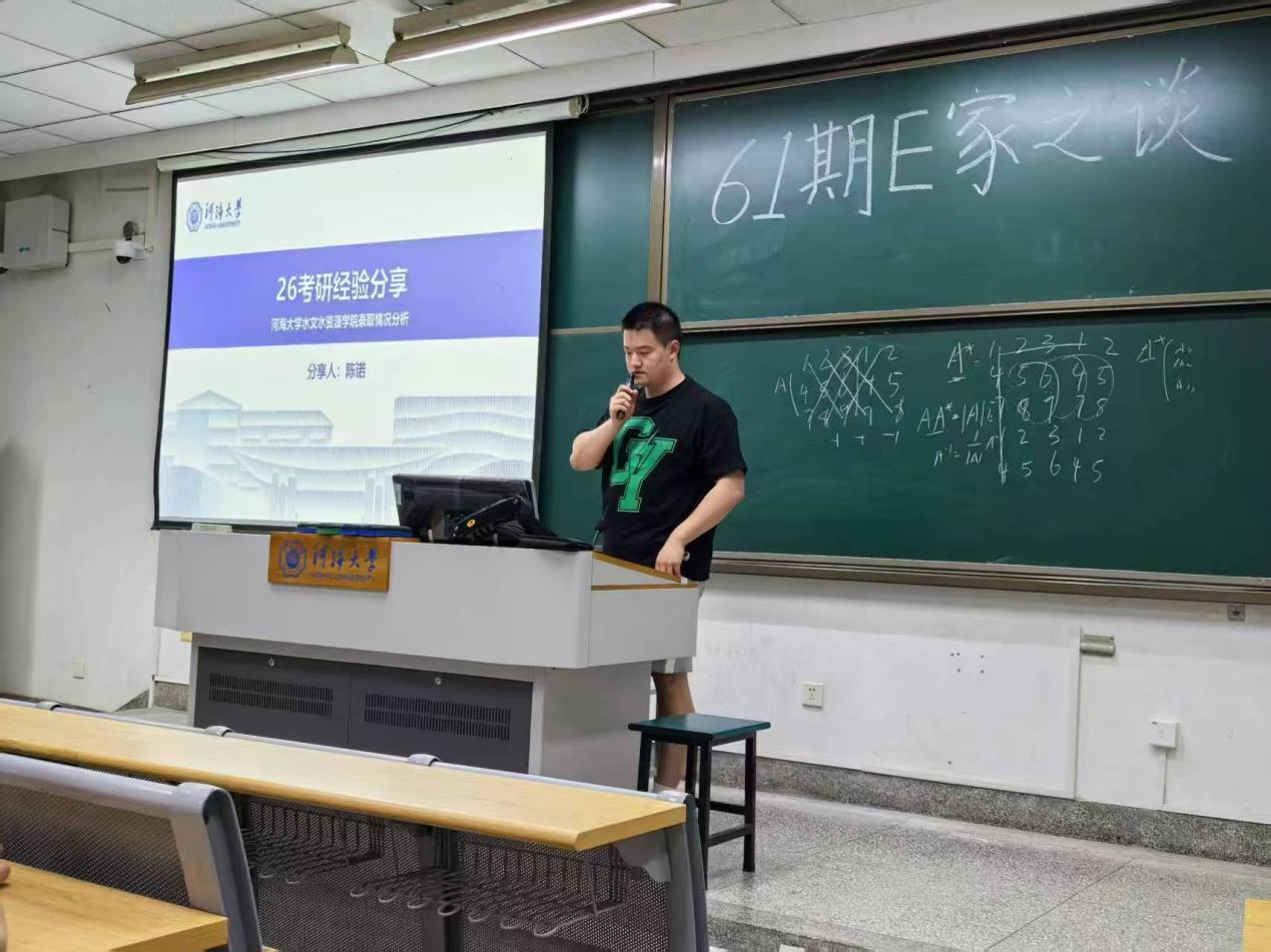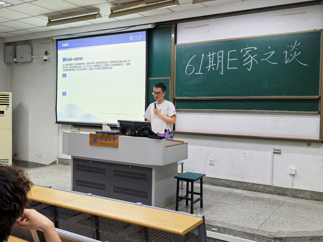 5月16日,第六十一期E家之谈讲座邀请了21级环境科学(中外合作办学)专业的三位优秀学长学姐向同学们分享考研,从择校策略、备考规划和心态调整等多方面为同学们答疑解惑。
