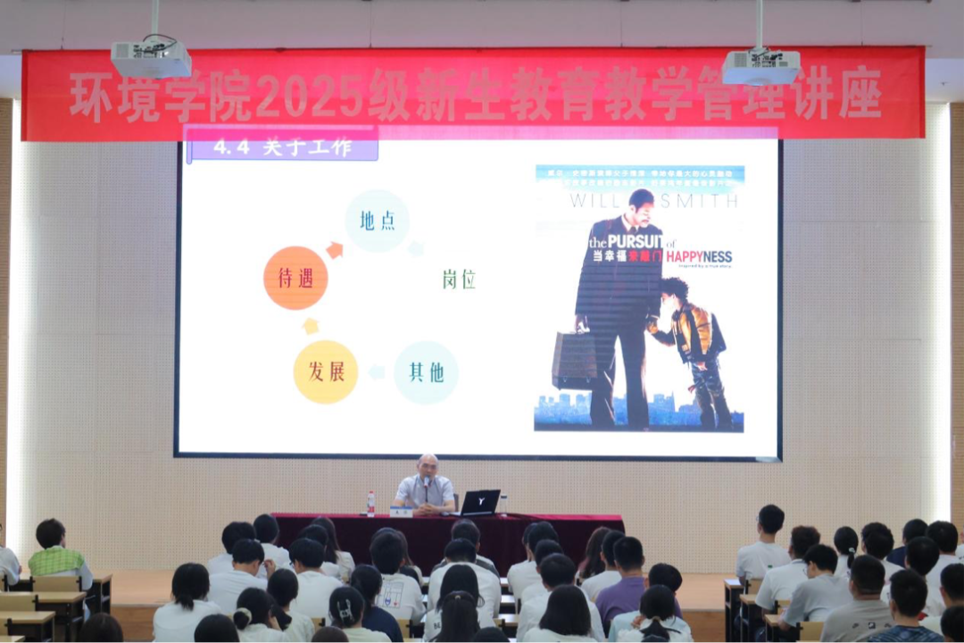 9月13日,竞博JBO官网为2025级新生举办教育教学管理讲座,学院副院长王华教授以"环境人的使命与担当"为主题,讲解了学校、学院、学科的发展脉络和专业特色,更以"德才并重,情理兼修"的育人理念,向新生们提出了成为新时代优秀环境人的成长要求。